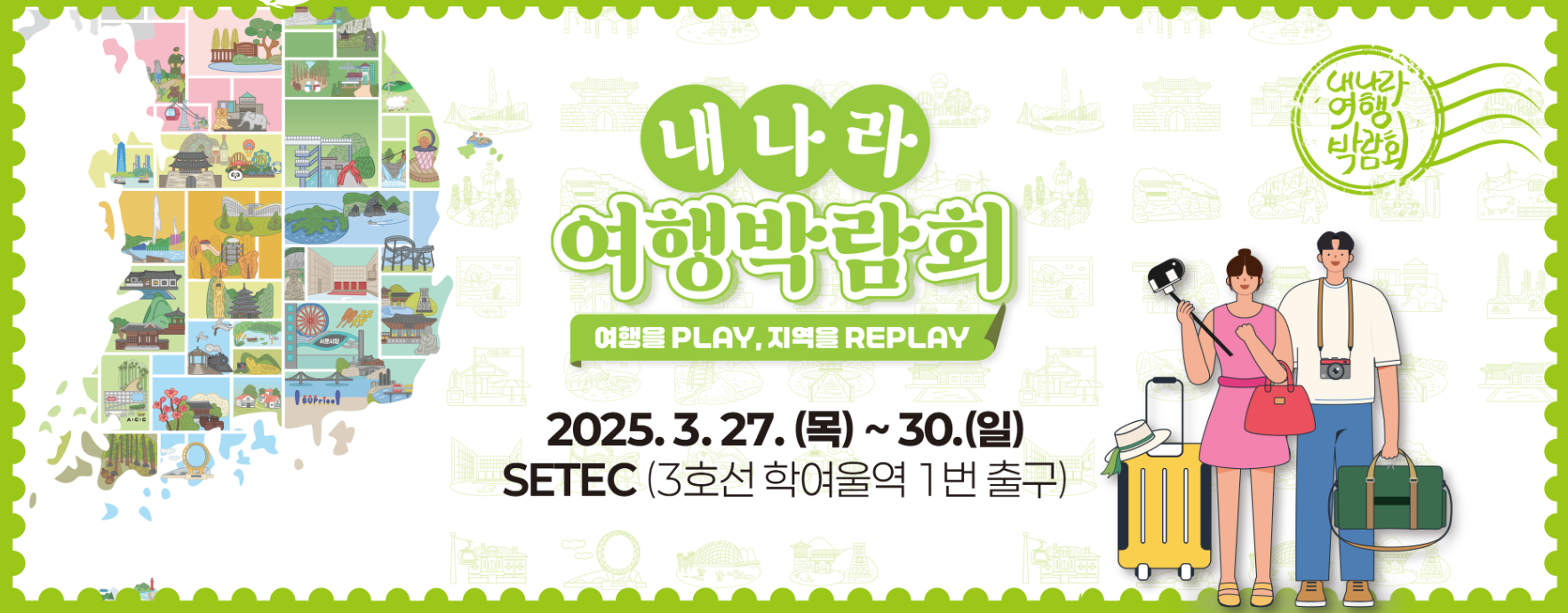 국내 여행의 새로운 매력을 발견할 수 있는 '2025 내나라 여행박람회' 한국의 다양한 여행지를 한눈에 만나볼 수 있는 이번 박람회를 통해 새로운 여행 트렌드를 경험하고, 특별한 여행 기회를 잡아보세요.