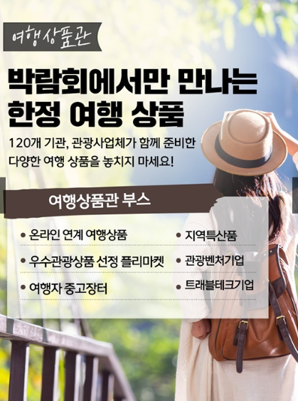 120개의 기관과 관광사업체가 함께하는 '여행상품관'에서는 박람회에서만 만날 수 있는 특별한 여행 상품이 준비되어 있습니다. 여행의 트렌드를 반영한 다양한 부스를 방문해 보고, 특별한 여행 기회를 놓치지 마세요.